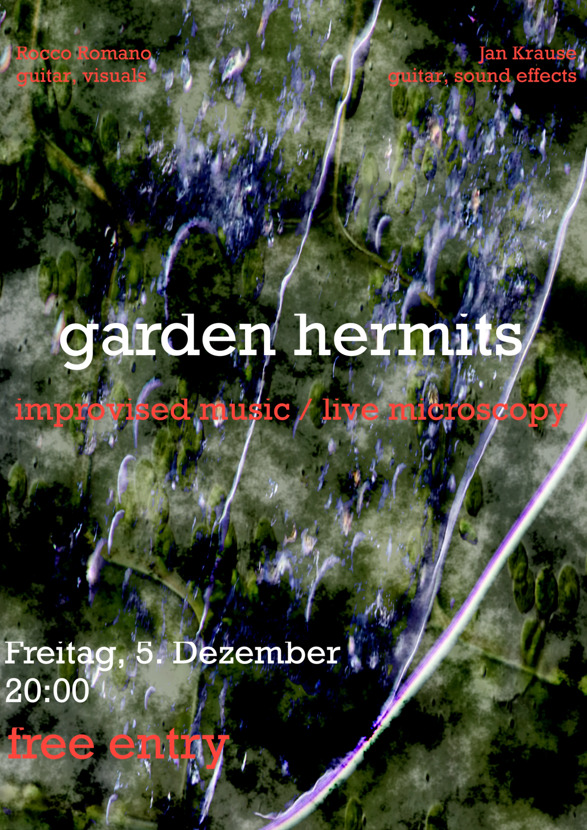 Garden Hermits ist eine improvisierte audiovisuelle Performance, die Live-Musik und Mikroskopie auf einzigartige Weise verbindet.